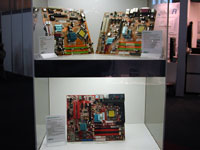 Of particular note was the fanless heatpipe-encrusted fulltower from Zalman, which uses the entire outside of the chassis as a heatsink. This isn't a new product, but it's still super-exotic and was worth taking a look at. Check out the CPU block, the PSU built into the door and the HDD cooling bays. Remember, this case is totally silent during use, with no fans at all. Apparently one TV station has used a heap of them in their sound booths, where the slightest background hum can be disastrous. If you ask me I'd just put the PC's outside the booth and run cables inside, but maybe that wasn't an option. However, bear in mind that a HDD will make motor noise while it's powered. I guess you could use a RAM drive and put the HDD into powersaving mode? Use a boot-ROM network card, no hard drive at all and load everything from the network? Anyway, enough hypothesizing.