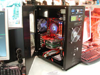 What's more interesting is the new little brother of this case from Zalman, called the "Maestro Senza". Altech were demonstrating a prototype, kitted out with various high-performance goodies including Corsair's Xpert memory with a custom message scrolling on the LEDs. This is a midtower version of the older fulltower and although an RRP wasn't available it is said to be more affordable than the $1000 or so RRP of the previous model. Estimates have it between $500 and $800 though, so it's still going to remain exotic. I guess when you factor in that it includes the PSU and all your cooling, that's not too unreasonable, compared to a more conventional non-cheap tower case, decent PSU and say a watercooling kit.