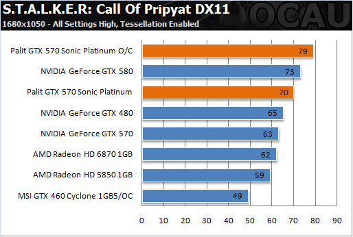 We have compiled a list of popular and graphically challenging games which include titles utilising Microsoft's DirectX 9, 10 and 11 API's for testing today; tested in 1920x1200 and 1680x1050 resolutions that are most commonly used by gamers based on Steam's hardware survey. Palit's GeForce GTX 570 Sonic Platinum and overclock results are highlighted in orange.