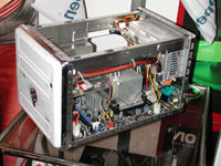 Morning Star distribute HIS, AOpen, AOC and MSI. They had an SFF mini-PC from AOpen which is apparently the first Centrino-based one. Obviously with the Pentium-M mobile CPU this SFF runs cooler and quieter than one with a conventional desktop CPU. They also had a range of HIS video cards on display, including the new X850XT iTurbo, which refers to the enormous cooler mounted on it. They claim this makes the card almost silent and still cooler than most other solutions.