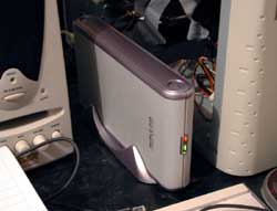 There's an old saying in the computer industry: Never underestimate the bandwidth of a station-wagon full of tapes. Don't ask me who said it originally, the original phrasing or the story of how it came about - that's all long ago sunk into the mists of time and the depths of a zillion contradictory webpages. The point is that storage capacity tends to far outstrip your ability to transmit data. Even nowadays, with residential ADSL and cable, we're finding more and more data, with bigger and bigger hard drives to store it all on. If you wanted to send a couple of GB to a friend or colleague, how would you do it? Definitely not via the Internet. You'd have to find some sort of portable media that you both have in common and cart it over to his PC. Home-use tape drives are a rare beast these days, while carting a stack of CD-R's to a mate's place is pretty common... but wouldn't it be a lot more convenient if you could just take the hard drive itself?