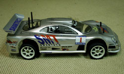 The first thing that struck me about this car is the sheer size of it. It's 1/10th scale, which isn't the largest size available by a long shot, and I already own a couple of 1/10th scale dirt buggy machines, but this car with its Mercedes-inspired shell certainly looks the business.