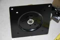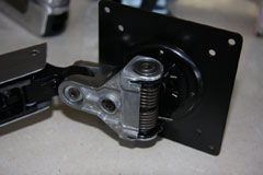 Now for the main part of the arm, that connects to the monitor. The large black plate screws into the back of the monitor - as long as it has a VESA mount. The hinge that sits behind the monitor allows for 360 degree rotation and 180 degree tilt left and right.