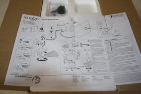 Each part is individually plastic wrapped, but luckily no twisty ties on everything like Dell and HP usually do. Once uncovered you can see the desk clamp and riser at top, middle extension arm at right and the monitor-end arm along with various screws and hex keys etc.