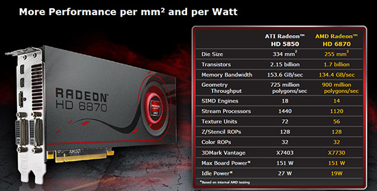 The first two cards to be released, the HD 6870 and 6850, don't feature a new architecture but more of a refinement of the previous HD 5800-series which has been popular for the past year. During this time AMD's engineers tweaked the existing architecture allowing for greater performance on a smaller die size which then reduced manufacturing costs, allowing AMD to sell these parts at price points that were not financially acceptable with HD 5850 and 5830 cards, particularly with the release of NVIDIA's GeForce GTX 460 variants.