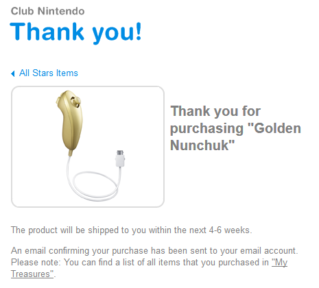 Club Nintendo Australia Golden Nunchuck