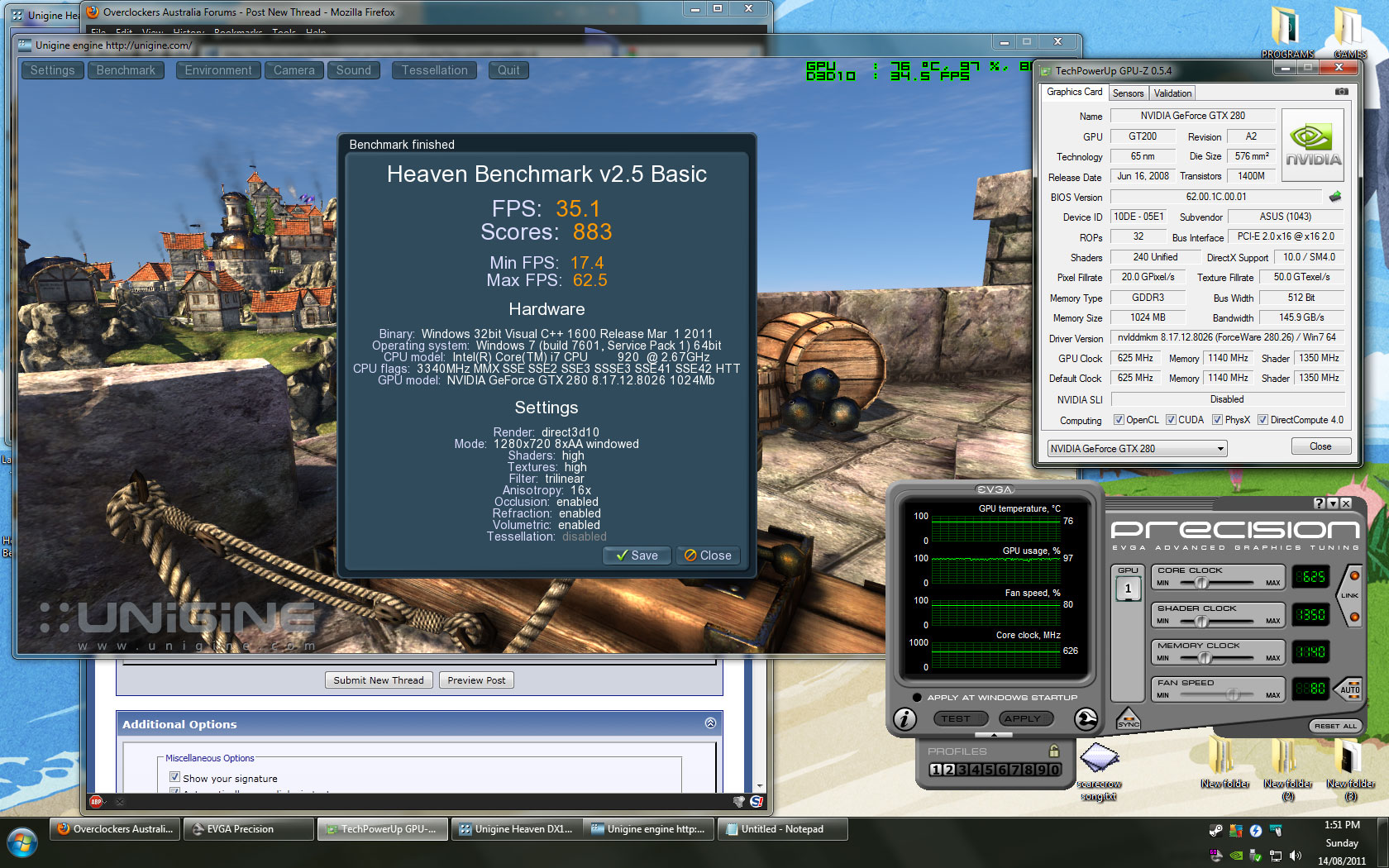 Overclockers Australia Pix - GTX280 Stock Benchmark - ImageClick here for code to link this image!